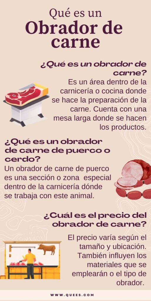 Así, el obrador de carne es un lugar dentro de la carnicería o cocina. En la que se trabaja en la preparación de la carne de puerco, de pollo, carne de cerdo o cualquier otra. También en la construcción del embutido, chorizo o morcilla.